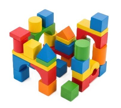Wooden blocks of various shapes and sizes, allowing for creative play.