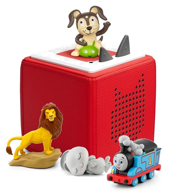 One Toniebox with 4 Tonies - dog, Thomas, Lion King, Sleepy