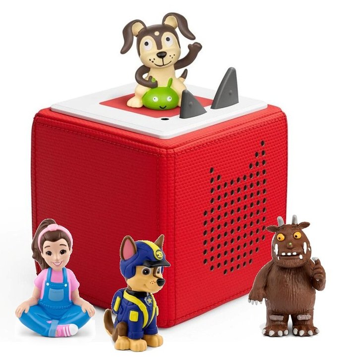 One Toniebox with 4 Tonies - dog, The Gruffalo, Ms Rachel, Paw Patrol