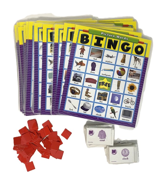 This is a fun game to identify words, and build vocabulary! It’s played just like traditional bingo, only when a word is called players try to find it on their photo-illustrated game cards!