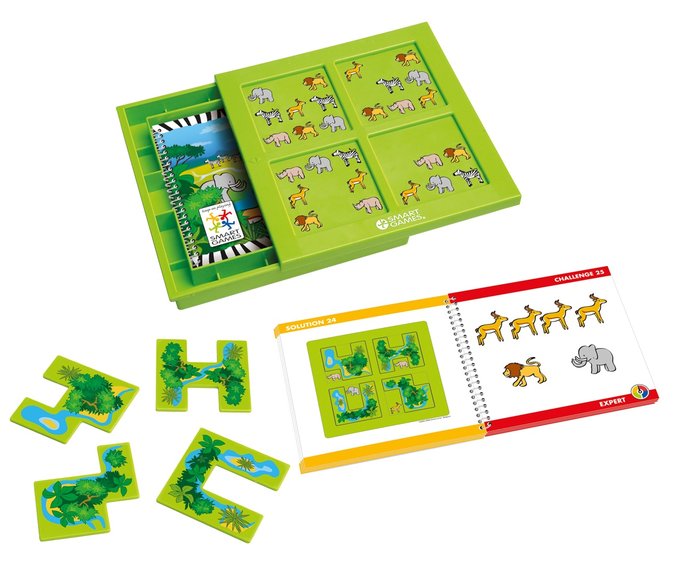 A logical mind-challenging game with 48 different challenges from very easy to extremely difficult. Sturdy & durable finish, ideal travel-game. Arrange the 4 playing pieces on the board to hide *all* the images *except* the ones shown on the challenge Remember you must use all 4 pieces.