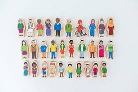 Set of 30 wooden people in a range of ages, ethnic backgrounds and genders.