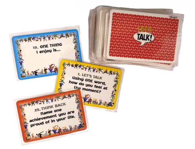 Encourages talking - game consists of 77 cards (25x 'Let's Talk', 26x 'Think Back' & 26x 'One Thing' cards)