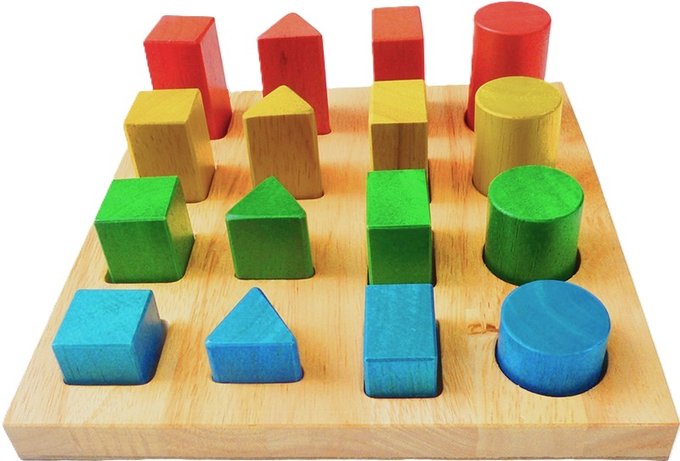 Sorting and recognition of shapes into the appropriate holes on a board.
