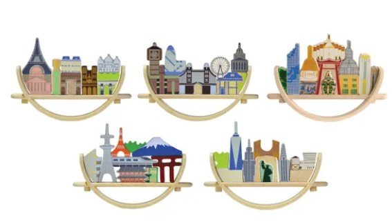 This set features famous cities-New York, London, Paris, Tokyo, and Bangkok - with 7 pieces for each city, each placed on a unique rocking crescent base. As children arrange the landmarks in place, they will experience a delightful tremble effect that encourages problem-solving and balance skills.