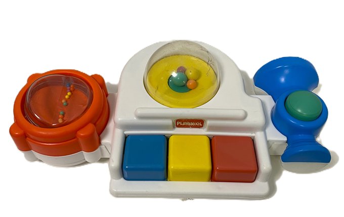 Three different activities including three easy press piano keys, soft touch squeaker and tipping balls.
